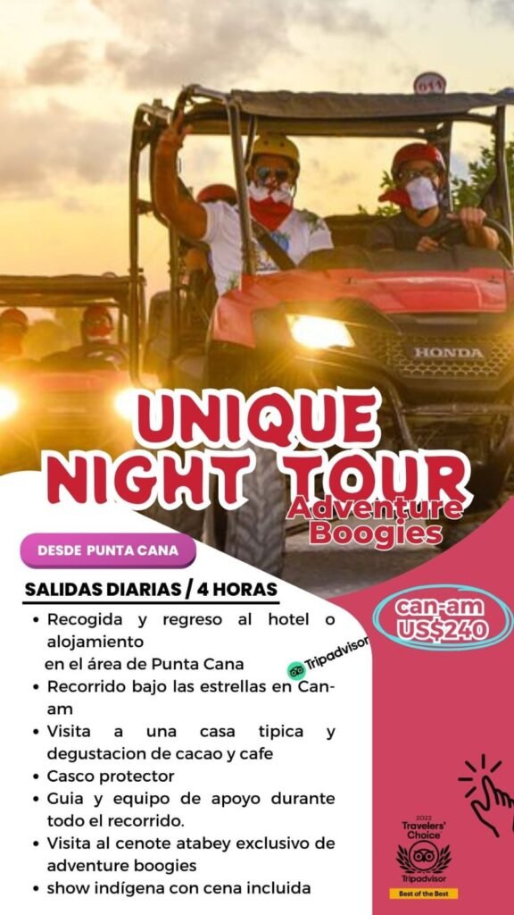 En República Dominicana, hay una gran variedad de excursiones y tours para todos los gustos, desde playas paradisíacas hasta aventuras en la naturaleza. Algunas de las más populares incluyen visitas a Isla Saona, Isla Catalina, el Parque Nacional Los Haitises y la península de Samaná para avistar ballenas. También puedes disfrutar de actividades como paseos en catamarán, excursiones en buggies, tirolesa y mucho más